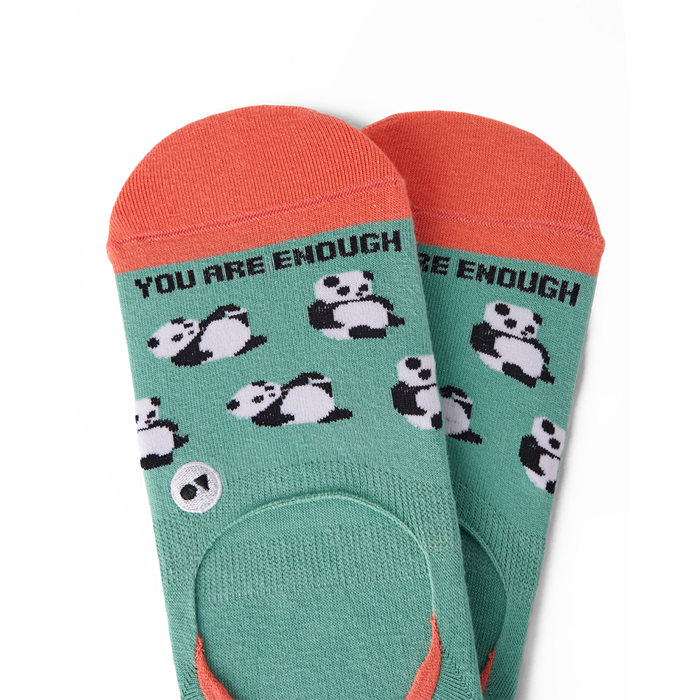 Don't let your worth be measured by a number on a scale, the smoothness of your skin, or any beauty standard set by society. The Positive Panda No-show Sock is here to remind you that there's nothing wrong with your body! You are perfect. You are beautiful. You are enough.